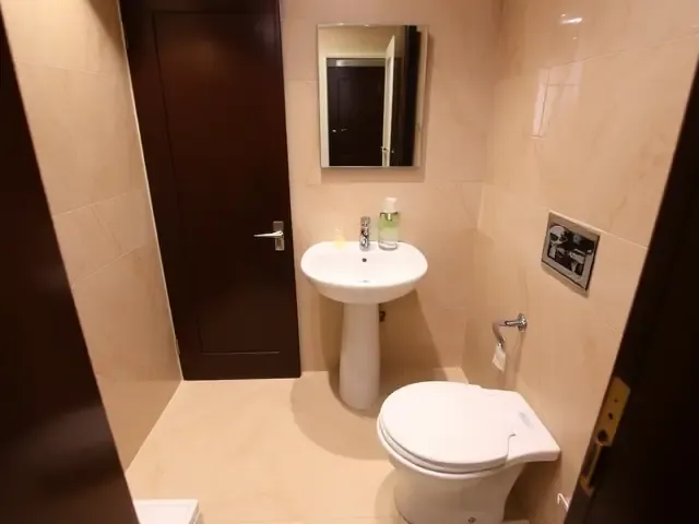 В наборе: кондиционер, санузел в номере, холодильник и чайник — чай вечером не требует переговоров с соседями.